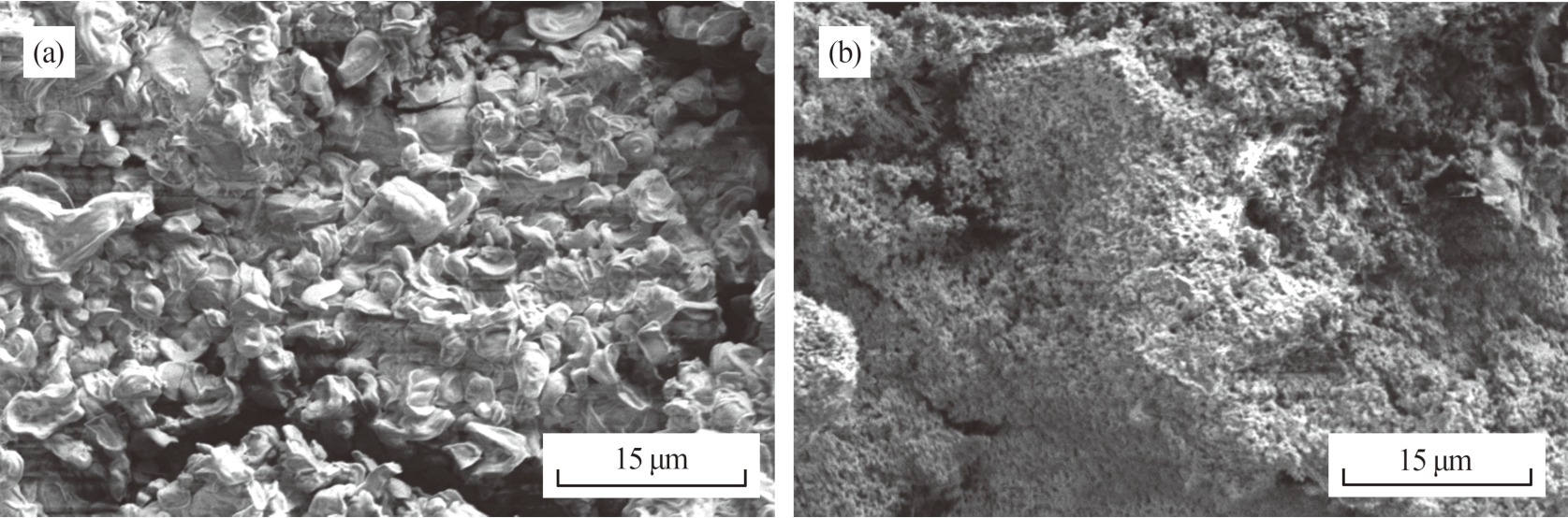 需要特别说明的是,在正、负极极片上均未扫描出Al(OH)3的特征峰.过滤放电后的电解液,向沉淀中滴加去离子水,沉淀部分溶解,继续滴加稀酸,沉淀全部溶解,因此,可以确认反应产生的白色絮状沉淀为Al(OH)3的混合物.结合XRD分析图谱可知,电极反应生成的Al(OH)3沉淀对正、负极的附着性均不高,基本聚沉于电解液中.