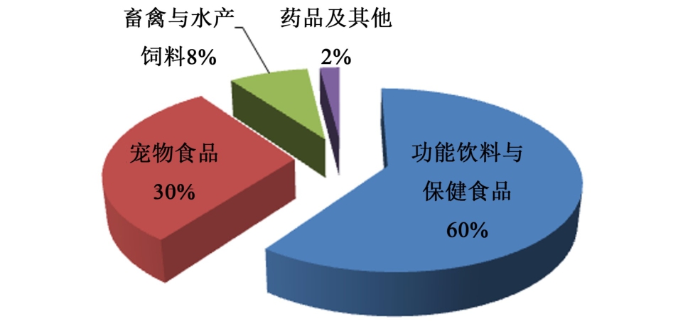 牛磺酸具有重要的生理功能和药理功能,广泛应用于功能饮料与保健食品、宠物食品、饲料、医药、化妆品和洗涤剂等行业,如图1所示。 2022年,全球牛磺酸产能约为9万t,60%以上用作食品添加剂,消费市场主要为欧美、日本等国家,但牛磺酸主要生产企业集中在我国。 近些年,牛磺酸产销量旺盛。 随着国产牛磺酸产业结构升级和技术革新的不断深入,产能将逐步释放,预计十四五末期将超过10万t。 近来牛磺酸价格持续上扬,下游需求不断扩大,预计每年增速可达20%~30%。