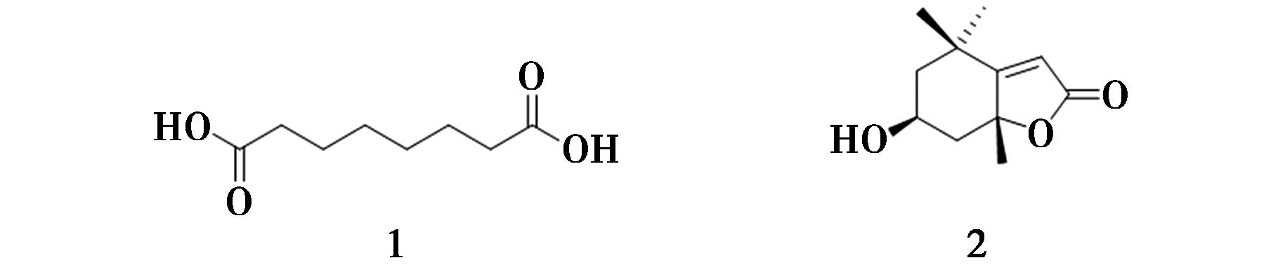 除上述的化合物以外,还有2个从簕欓花椒的茎中分离得到的其他成分,分别为辛二酸(subericacid,1)和(loliolide,2),如图8所示[9,10]。