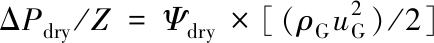 式中:ΔPdry/Z为干填料单位高度压降,kPa/m;Ψdry为干填料阻力系数;uG为气体速速,m/s;ρG为气体密度,kg/m3。