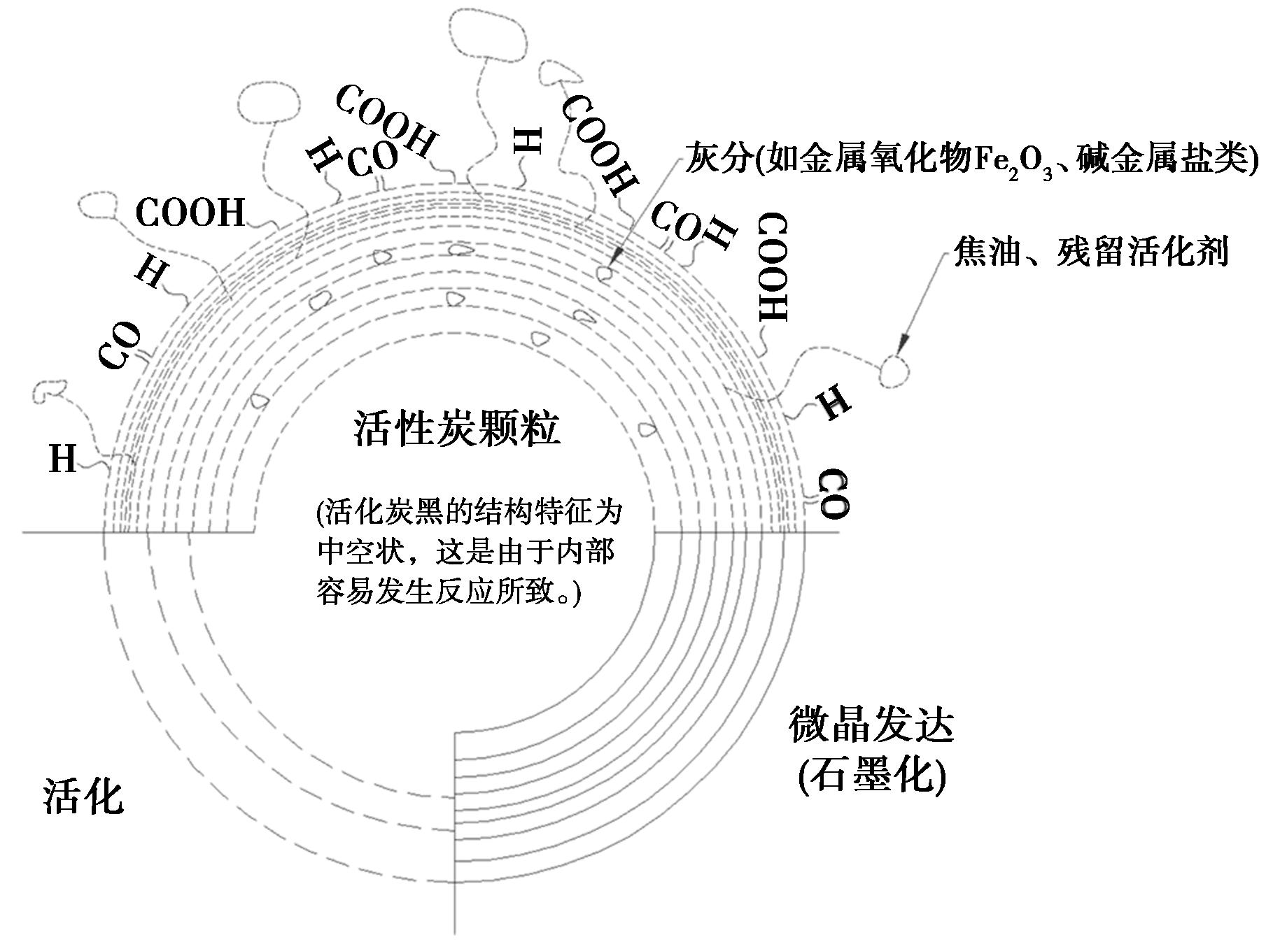 活性炭是一种以碳元素为骨架主体的多孔吸附材料。其吸附性能主要取决于发达的孔隙拓扑结构,但亦与化学组成及表面官能团密切相关。
