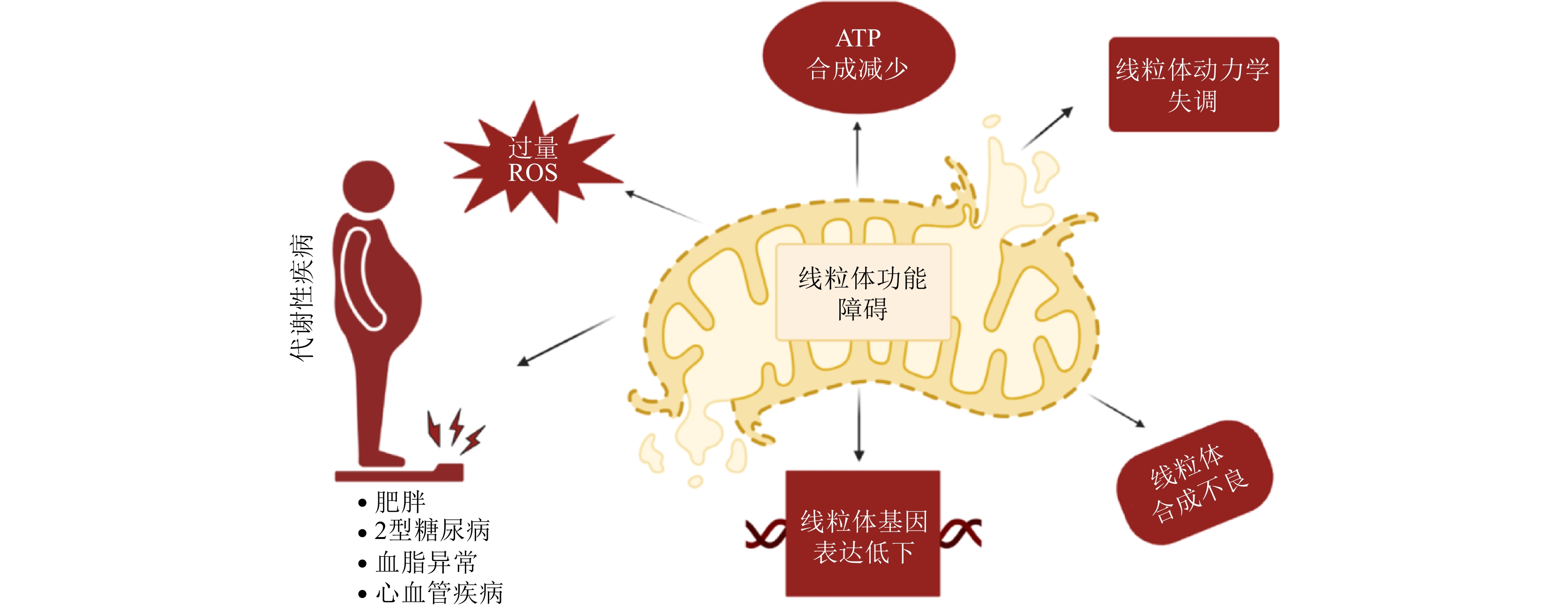 表 1 与线粒体功能障碍相关的慢性疾病Table 1 Chronic diseases associated with mitochondrial dysfunction疾病类别 疾病名称 主要机制 代谢疾病 T2D 胰岛素敏感组织(如肌肉、肝脏)中的线粒体功能障碍会导致胰岛素抵抗和葡萄糖代谢紊乱 肥胖 脂肪组织和骨骼肌中的线粒体氧化能力下降,会导致脂肪堆积和代谢失衡 非酒精性脂肪肝 线粒体功能受损会破坏脂肪酸氧化过程,导致脂质在肝脏中积聚 神经退行性疾病 阿尔茨海默病 线粒体功能障碍会加剧氧化应激并损害能量代谢,进而导致神经元损伤和认知功能下降 帕金森病 线粒体复合体I的缺陷和ROS生成的增加与多巴胺能神经元的丢失有关 心血管