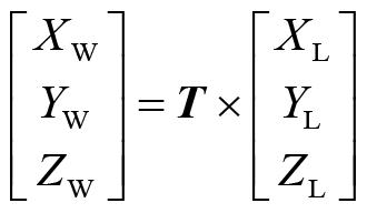 式中:(XW,YW,ZW)T为激光点在世界坐标系下的坐标;(XL,YL,ZL)T为激光点在LiDAR坐标系下的坐标;T为变换矩阵。