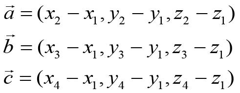 通过计算每个三角形四面体的体积并将它们相加来得到整个曲面的体积[2]。每个三角形四面体的体积可以通过公式(12)计算:
