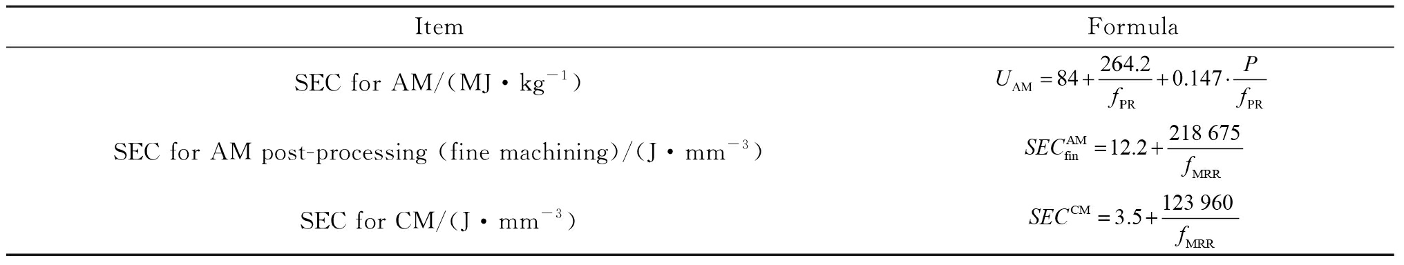 Table 4 SEC formula for AM and CM processes at manufacturing stage[24]