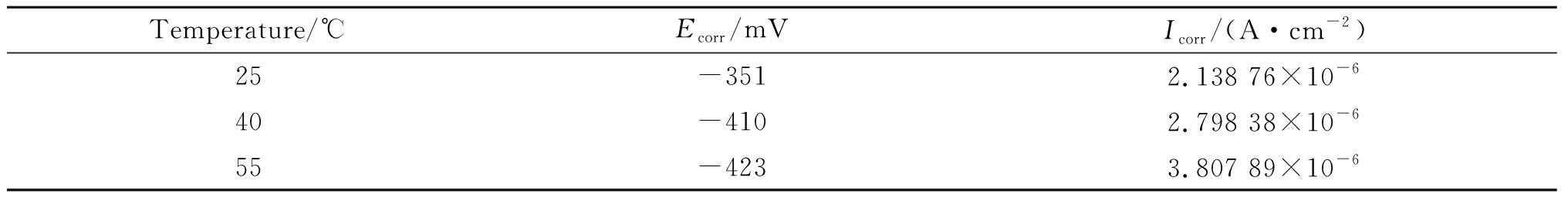 Temperature/℃Ecorr/mVIcorr/(A·cm-2)25-3512.138 76×10-640-4102.798 38×10-655-4233.807 89×10-6