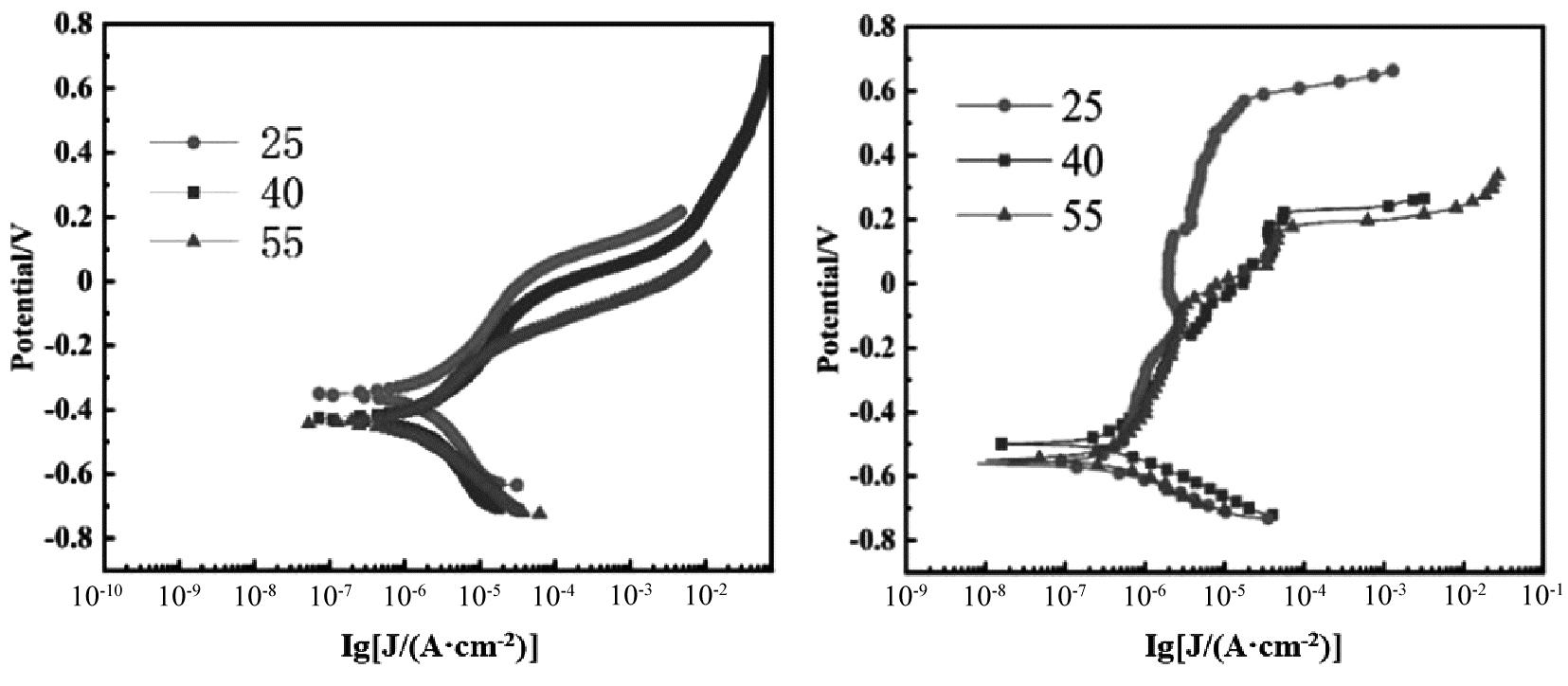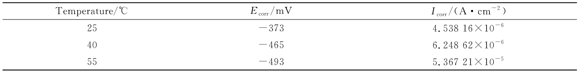 Temperature/℃Ecorr/mVIcorr/(A·cm-2)25-3734.538 16×10-640-4656.248 62×10-655-4935.367 21×10-5