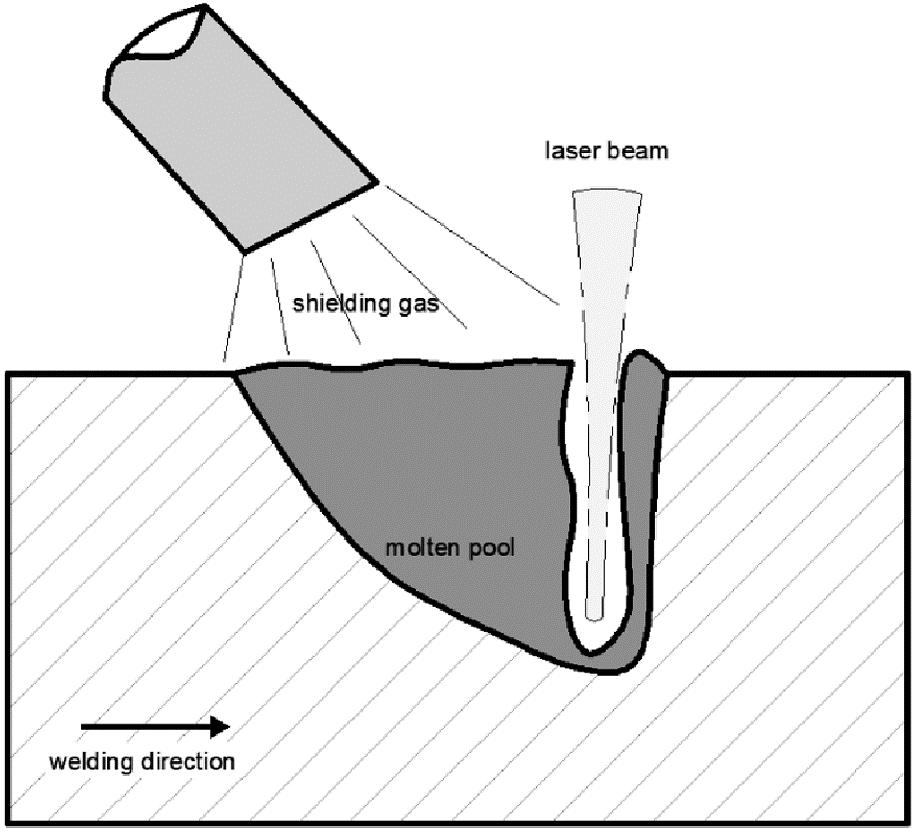 大量的研究结果表明,激光焊接中的工艺型气孔的形成与匙孔效应的稳定状态密切相关[15]。如图19所示,激光焊接过程熔池会形成匙孔效应,但小孔也极不稳定,特别是非穿透型焊缝,高能量激光束在焊接移动过程中,小孔的形态会发生交替的剧烈膨胀与收缩,导致小孔出现周期性地闭合,小孔内未逃逸出的气体残留在熔池内,凝固后形成气孔,这是导致工艺型气孔产生的重要原因之一[16]。因此,优化焊接过程中的参数,提高焊接过程中匙孔的稳定性是控制焊缝中气孔率的关键。