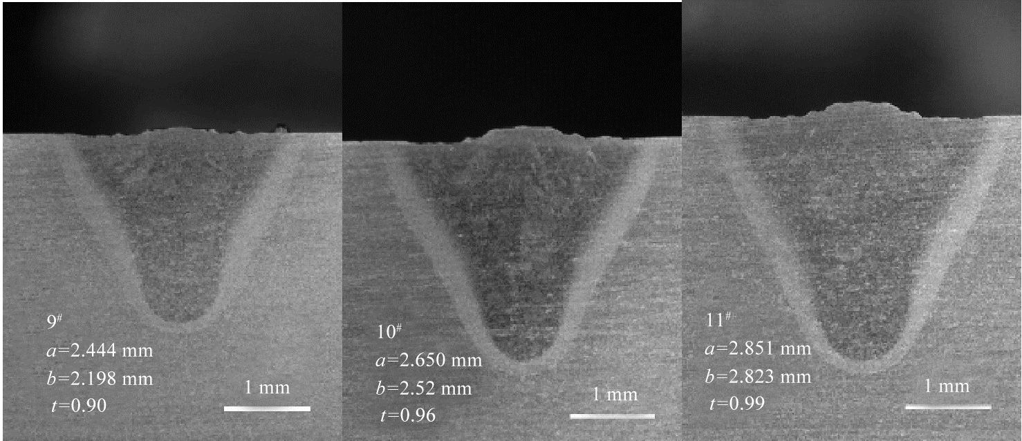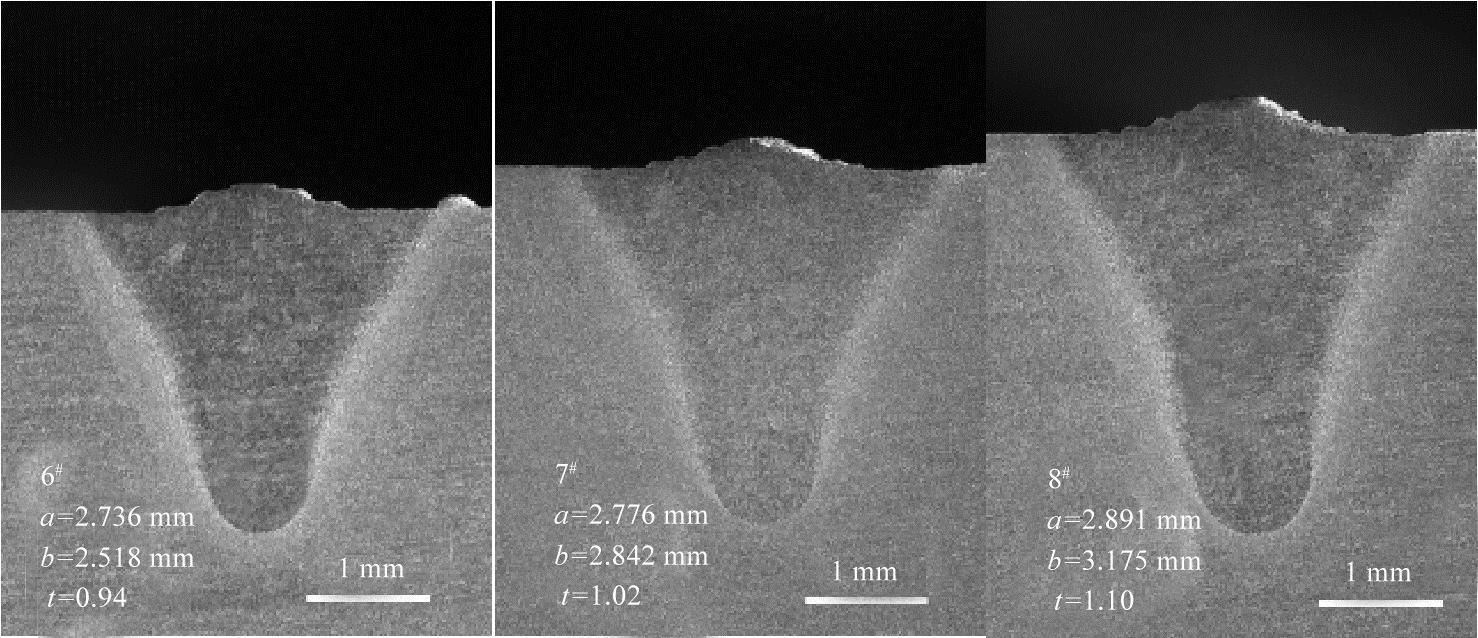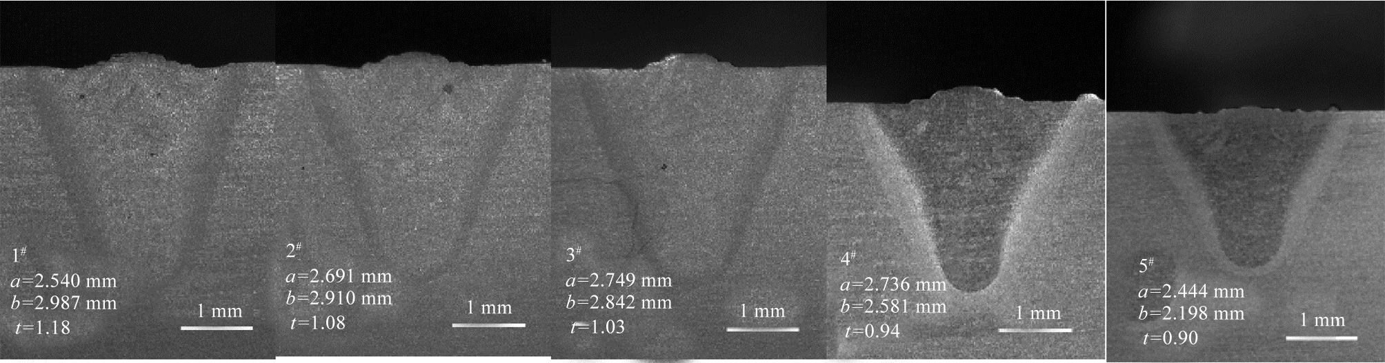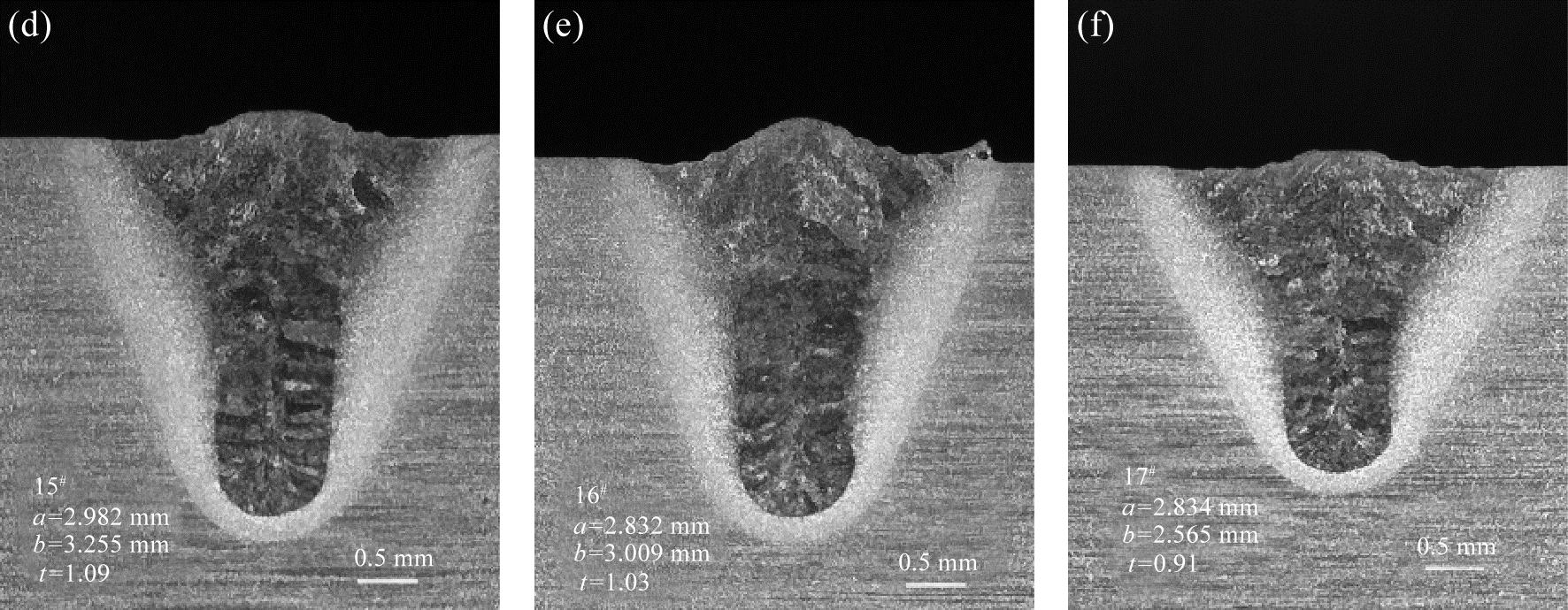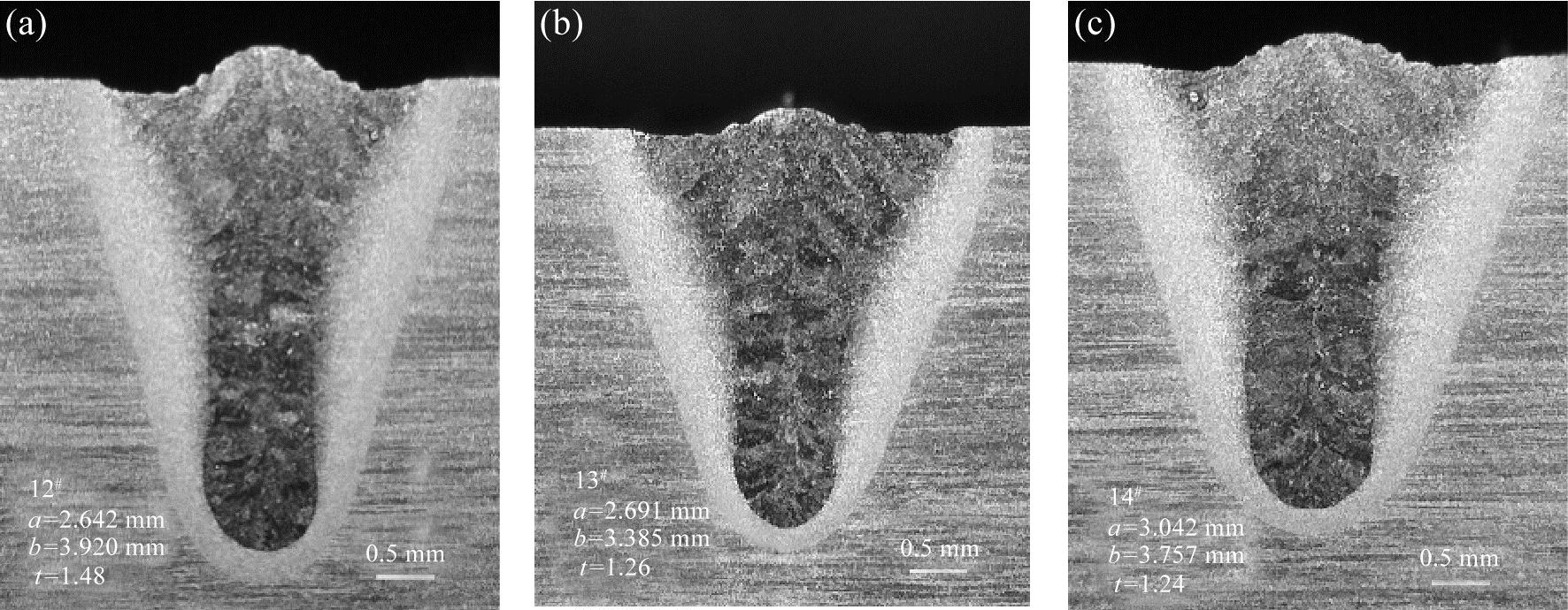为0.4 mm、0.48 mm、0.6 mm的光学配置进行焊接实验,离焦量Z选定为+4 mm和+12 mm,固定焊接速度为25 mm/s,激光功率固定为2 800 W。