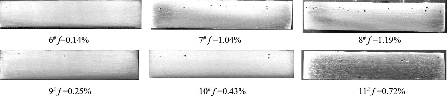 综上所述,焦斑直径较小时,激光功率密度大,焊缝难以获得较小的深宽比值,而选用较大的焦斑直径进行焊接可以获得更优的焊缝成形,更易获得较小的深宽比值,焊缝内部气孔率更低。采用较大的焦斑直径并配合选用较大的离焦量以控制焊缝深宽比在0.9左右时,可有效改善焊缝内部气孔缺陷。