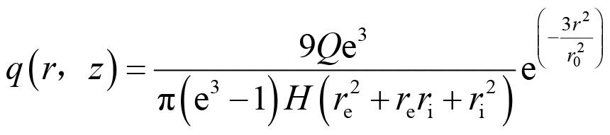 在实际激光焊接过程中,激光以光斑形式作用在DP780钢表面,钢上表面有微量熔化,为了贴合实际情况,模拟仿真的热源选择2D高斯热源模型,其函数表达式为: