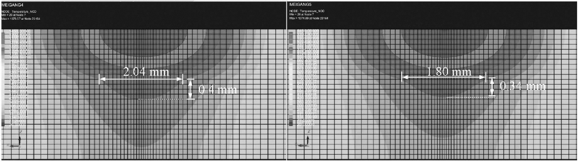(1)2D平面高斯热源在镁/钢激光焊接模拟仿真熔池形貌与实际激光焊接相吻合,因此该热源模型可以代替实际热源进行温度场的仿真研究。