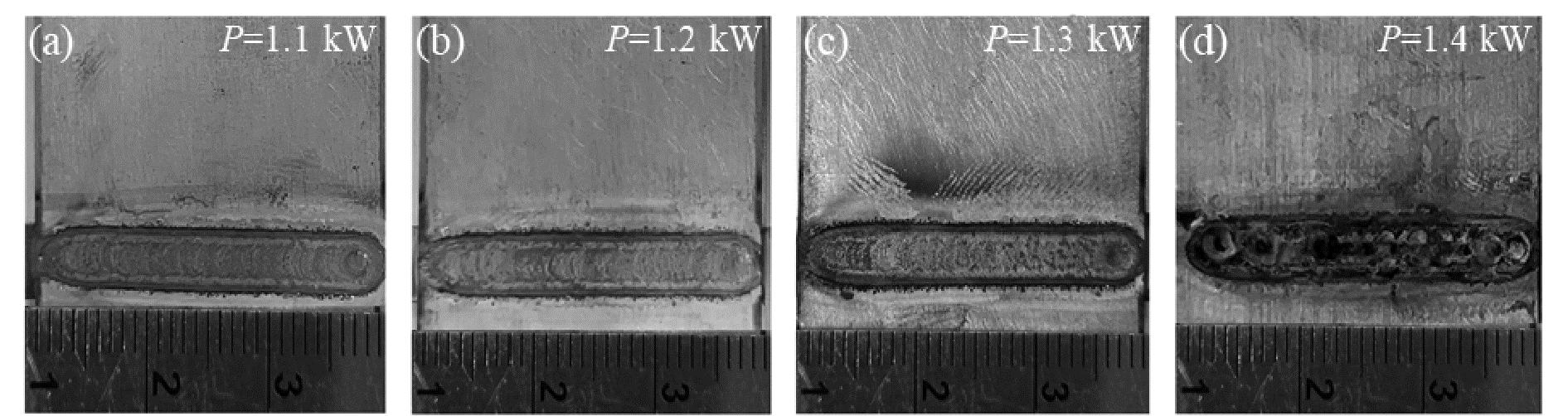 图6 不同激光功率镁/钢激光焊接表面宏观形貌