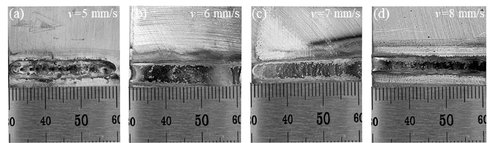 (a) v=5 mm/s;(b) v=6 mm/s;(c) v=7 mm/s;(d) v=8 mm/s