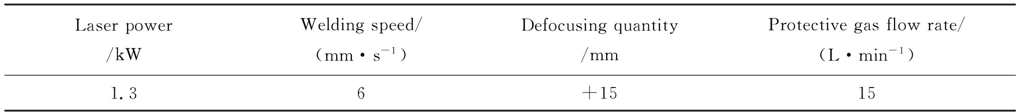 Laserpower/kWWeldingspeed/(mm·s-1)Defocusingquantity/mmProtectivegasflowrate/(L·min-1)1.36+1515