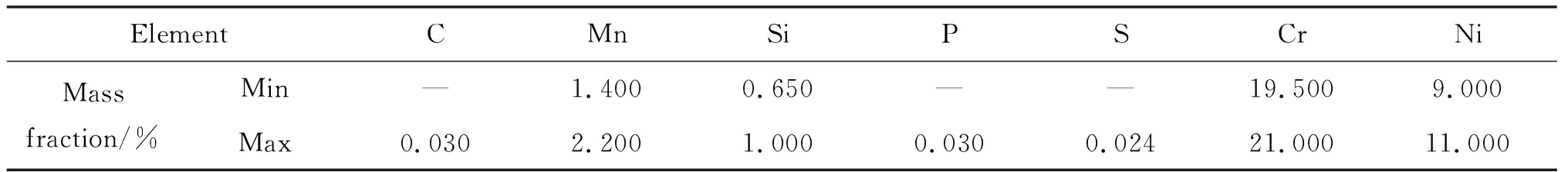 ElementCMnSiPSCrNiMassfraction/%Min—1.4000.650——19.5009.000Max0.0302.2001.0000.0300.02421.00011.000