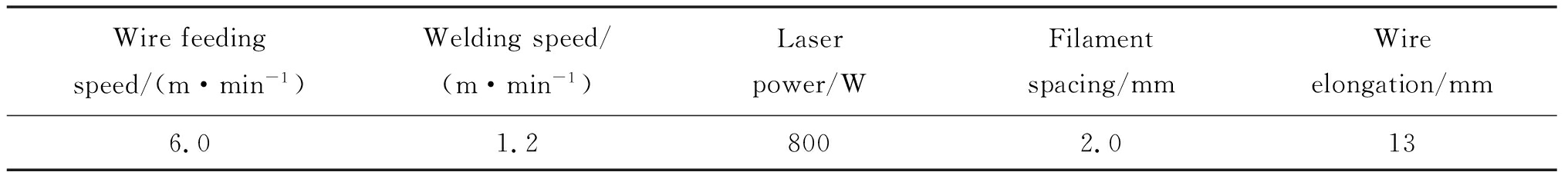 Wirefeedingspeed/(m·min-1)Weldingspeed/(m·min-1)Laserpower/WFilamentspacing/mmWireelongation/mm6.01.28002.013