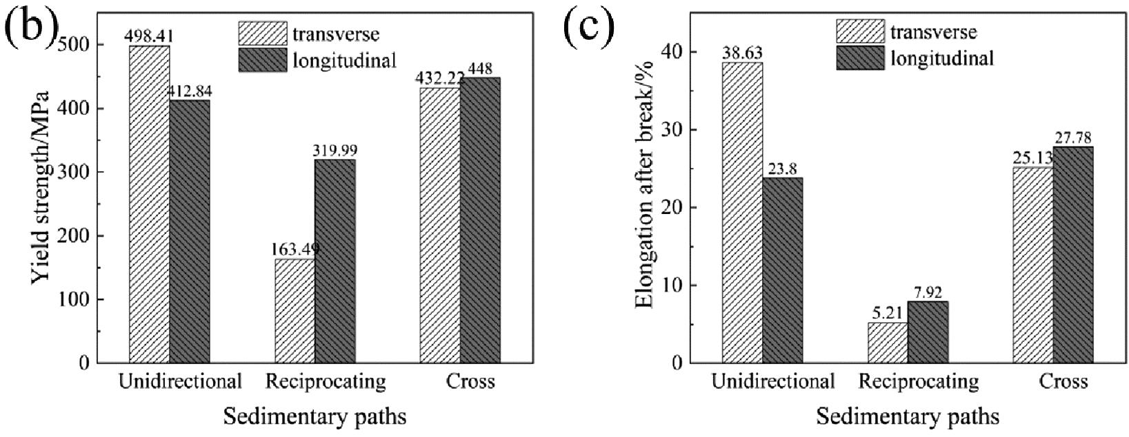 (a)Tensile strength;(b)yield strength; (c) elongation after break