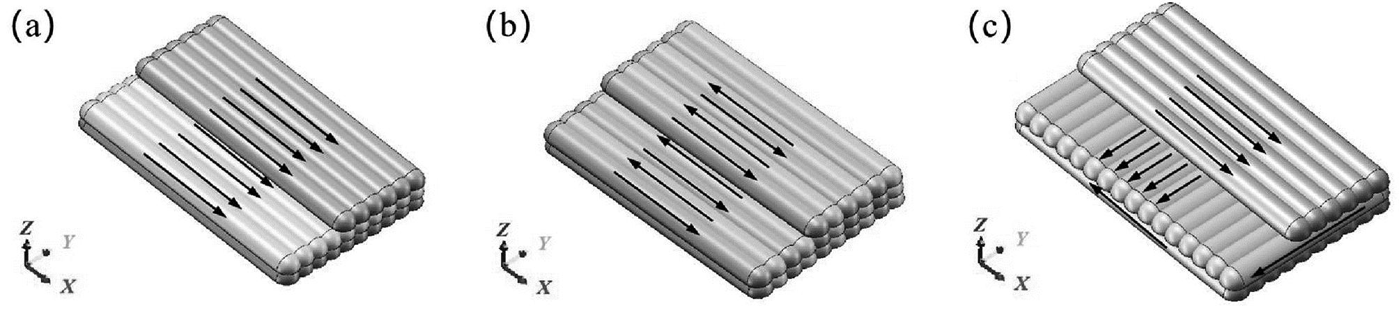 (a)单向平行;(b)往复插补;(c)十字交叉